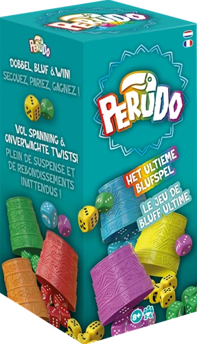 Perudo is een fantastisch dobbelspel waarbij jij enkel met de winst ervan doorgaat door te bluffen! Schud de vijf dobbelstenen in de beker, gluur naar je eigen score en gok hoeveel dobbelstenen met hetzelfde getal minimaal op tafel liggen.